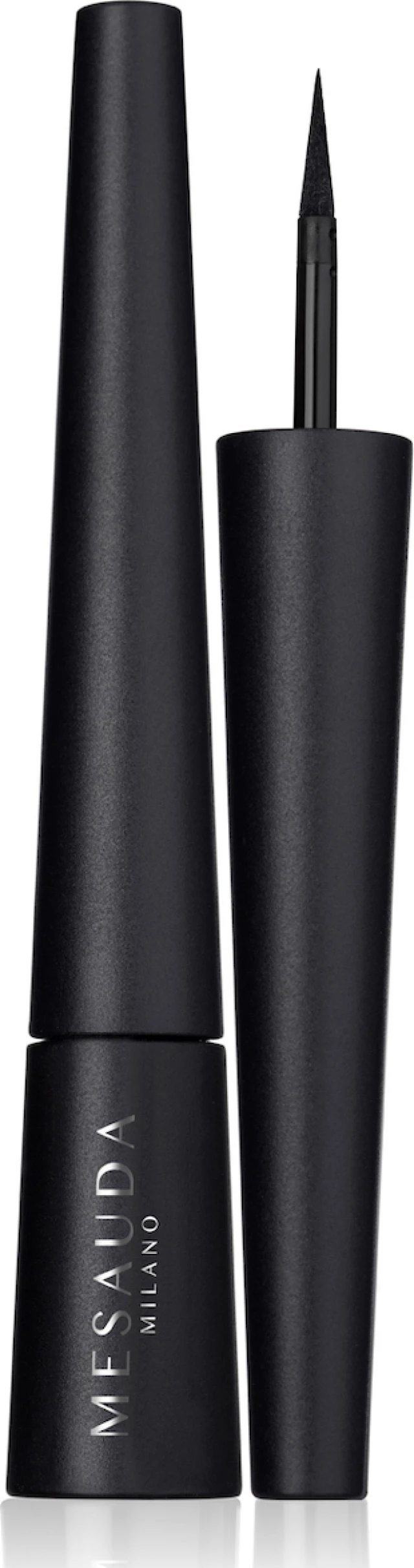 Eyeliner σε μαύρο χρώμα της Mesauda Milano. Διαθέτει πινέλο με ειδικά διαμορφωμένη μύτη για πιο άμεσο και με μεγαλύτερη ακρίβεια αποτέλεσμα. Είναι ιδανικό για λεπτές ή και παχύτερες γραμμές ανάλογα με την εφαρμογή του.